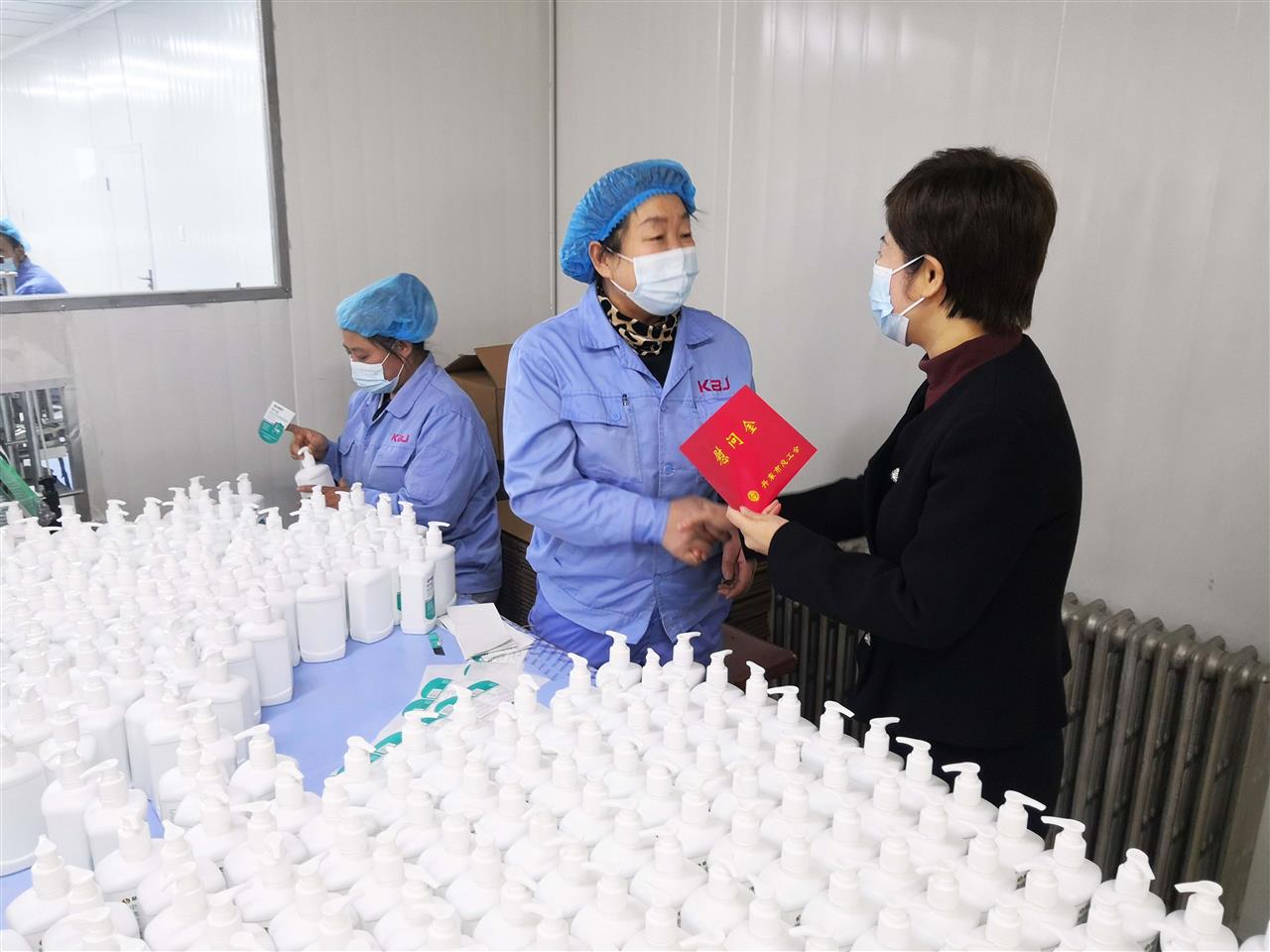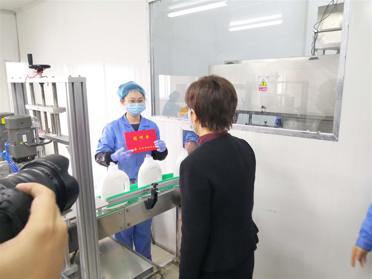 牛主席與何副主席一行來到丹東欣時代生物醫(yī)藥科技有限公司消殺產(chǎn)品生產(chǎn)車間,為企業(yè)員工送去慰問金并與他們親切交談,詳細(xì)詢問他們的身體情況,生活狀況以及家庭經(jīng)濟(jì)收入情況,勉勵他們要積極樂觀面對工作和生活,有困難及時向工會反映,在黨和政府的關(guān)懷下,生活一定會越過越好。